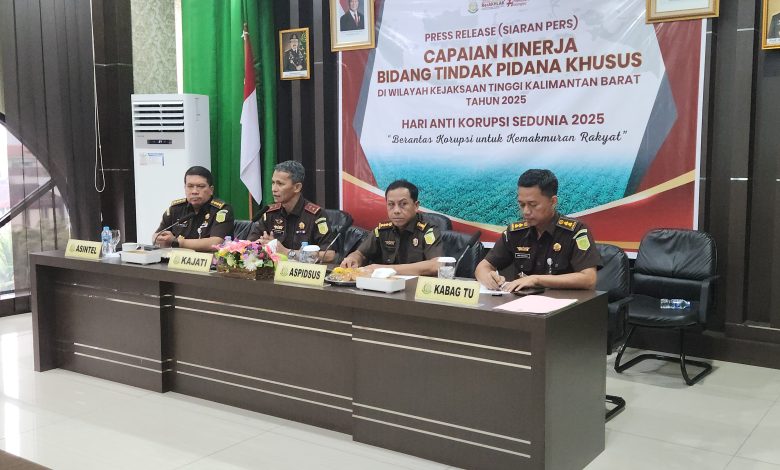 Pontianak I GemaTipikor — Dalam momentum Hari Anti Korupsi Sedunia (Hakordia) 2025, Kejaksaan Tinggi Kalimantan Barat memaparkan capaian kinerja penanganan tindak pidana korupsi sepanjang Januari–Desember 2025. Dipimpin Kepala Kejati Kalbar, Dr. Emilwan Ridwan, pemaparan digelar di Ruang Vidcom Lantai 4 Kejati Kalbar, Selasa (9/12/2025).
