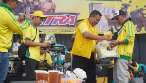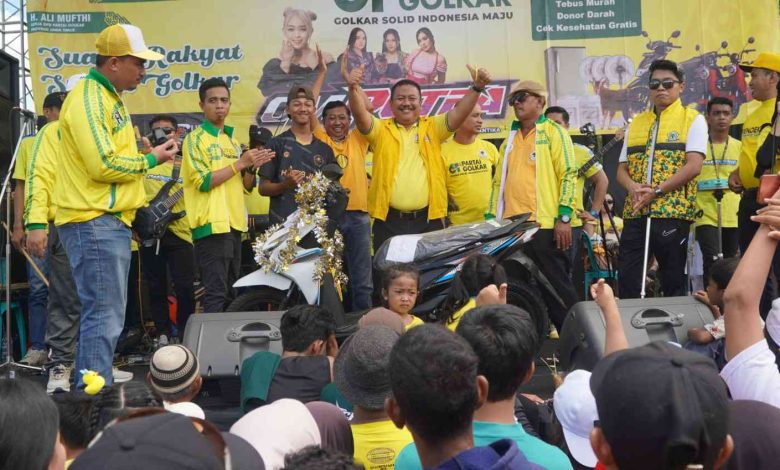 Puncak acara berlangsung semakin meriah saat Dr. H. Ali Mufthi secara langsung mengundi hadiah utama berupa satu unit sepeda motor Honda Beat, disambut gegap gempita masyarakat yang berharap menjadi pemenang. Sorak sorai dan tawa bahagia menghiasi lapangan Sine, menjadi simbol kebersamaan dan semangat positif yang dibangun Golkar bersama rakyat.