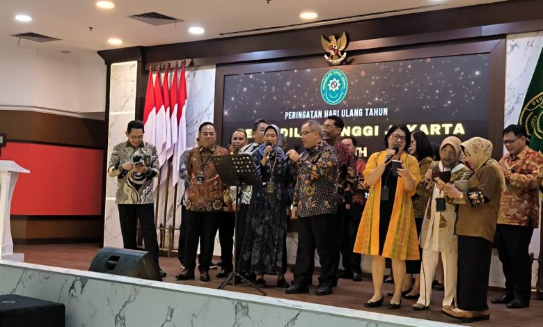 Jakarta, GemaTipikor – Pengadilan Tinggi Jakarta menggelar acara syukuran dalam rangka memperingati Hari Ulang Tahun (HUT) ke-76. Kegiatan berlangsung khidmat dan penuh kebersamaan di Aula Ansyahrul, Lantai 6, pada Senin (20/4/2026).