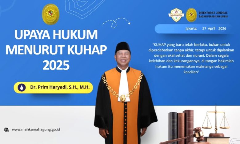 Ketua Kamar Pidana MA, Dr. Prim Haryadi, dalam pemaparannya menegaskan bahwa pemahaman terhadap upaya hukum tidak hanya menyangkut aspek substansi perkara, tetapi juga berkaitan langsung dengan perlindungan hak para pihak dalam proses peradilan pidana. Ia menekankan bahwa baik terdakwa maupun penuntut umum memiliki hak yang sama untuk menempuh langkah hukum sesuai ketentuan yang berlaku.