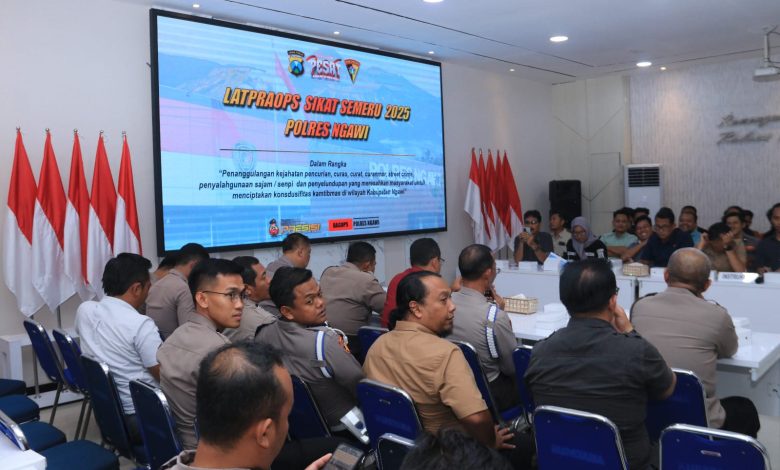 Ngawi, Gematipikor.com — Dalam upaya menciptakan situasi kamtibmas yang aman dan kondusif di wilayah Kabupaten Ngawi, Kepolisian Resor (Polres) Ngawi di bawah kepemimpinan AKBP Charles Pandapotan Tampubolon, S.I.K., S.H., M.H., menggelar Latihan Pra Operasi (Lat Pra Ops) Sikat Semeru 2025 di Ruang Guyup Mapolres Ngawi, Selasa (22/10/2025).