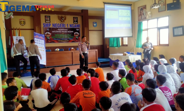 Ngawi, Gematipikor.com – Dalam momentum Masa Pengenalan Lingkungan Sekolah (MPLS), Satuan Lalu Lintas (Satlantas) Polres Ngawi menyelenggarakan kegiatan Police Go To School di SMP Negeri 1 Ngawi pada Sabtu (19/7/2025). Kegiatan ini menjadi bagian dari strategi preventif dalam mendukung pelaksanaan Operasi Patuh Semeru 2025, yang berlangsung serentak sejak 14 hingga 27 Juli 2025.